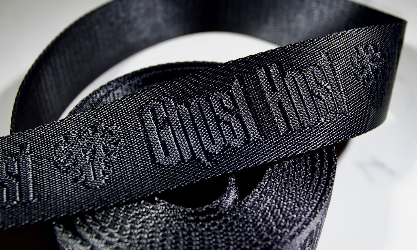 This webbing is the perfect accent for bags that need a little more than just plain webbing! It really is great quality and has a nice sheen to it which makees the writing stand out!