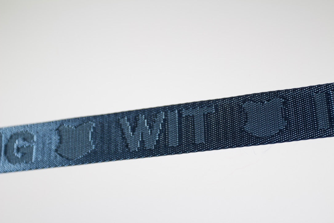 1" woven webbing, design is woven directly into the webbing.