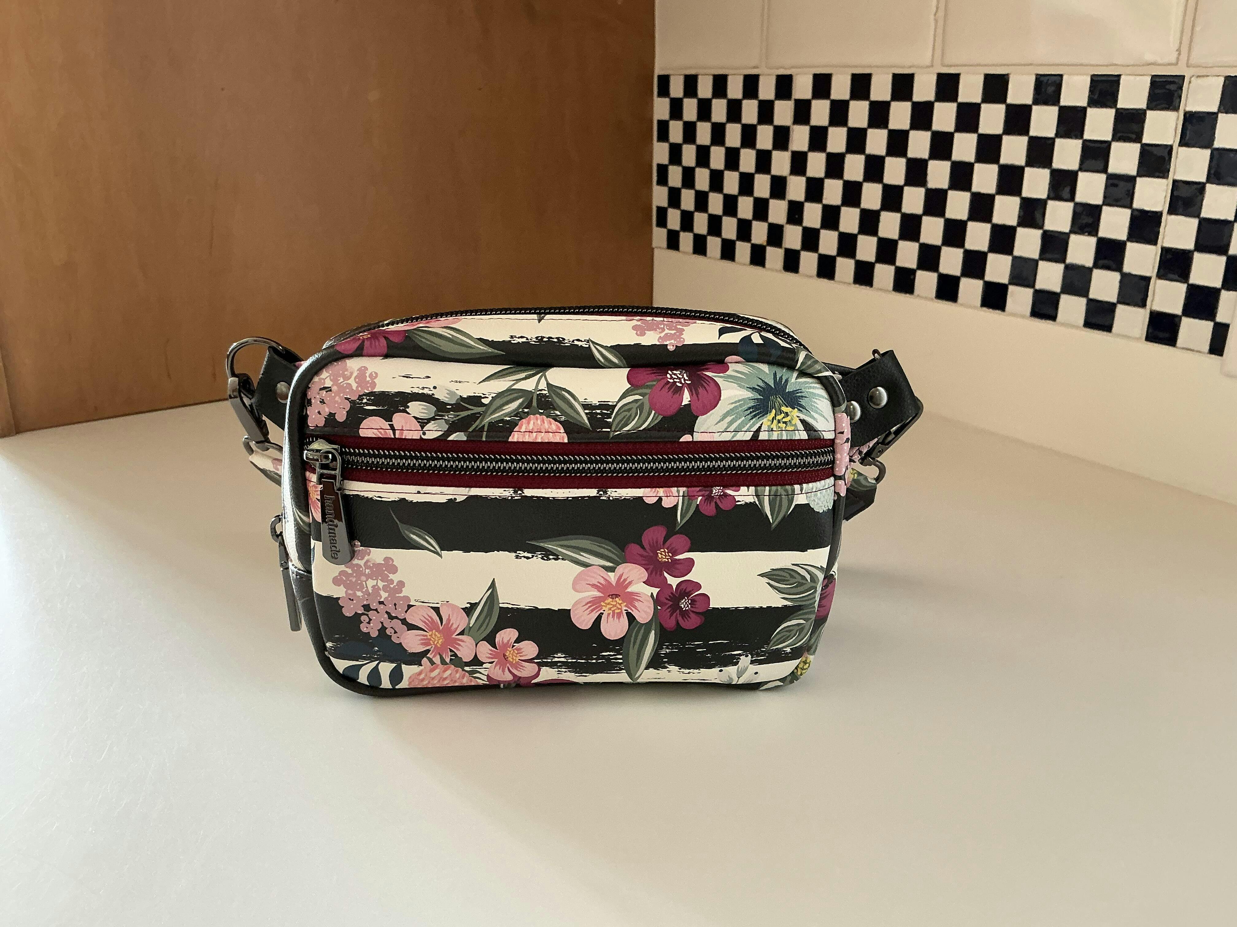 Diane G. Not sure if it was the beautiful pattern or the exquisite vinyl, but either way, I fell in love with this Grunge floral Vinyl. I used it to may the Rayna Sling and it was a marriage made in heaven. I love my bag and I would use this vinyl again and again.
