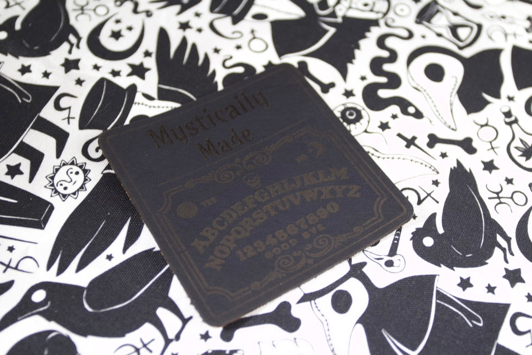**A very special statement tag** Depending on how the light hits this tag, the mystical ouija board appears and disappears!